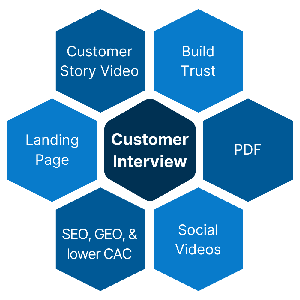 We interview your customers remotely, uncovering stories, quotes, and examples that will resonate with your ICP and support your positioning.
